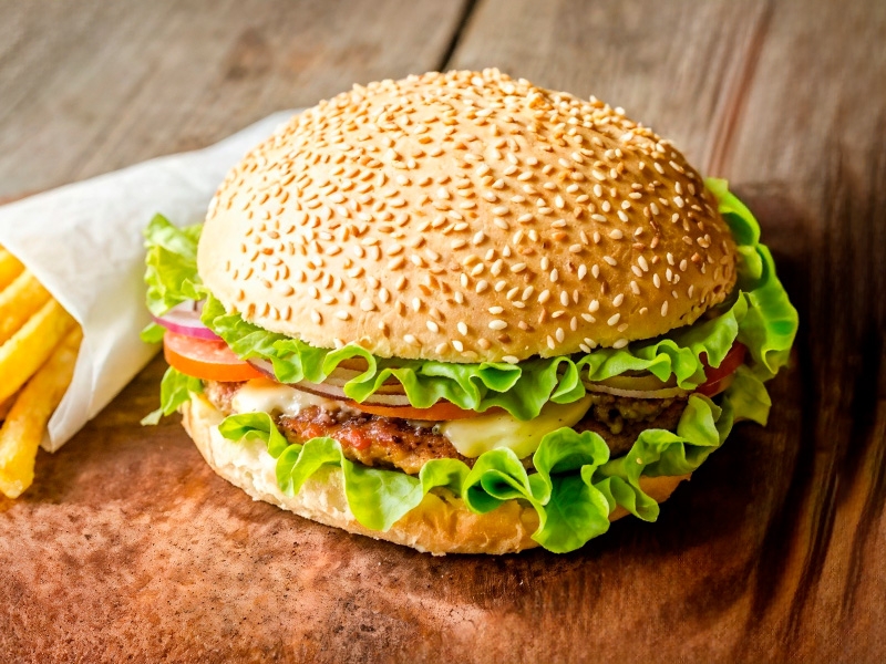 Гамбургер с говядиной + фри + кетчуп