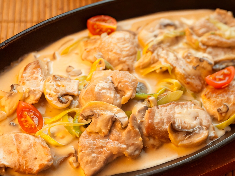 Свинина с грибами в сливках