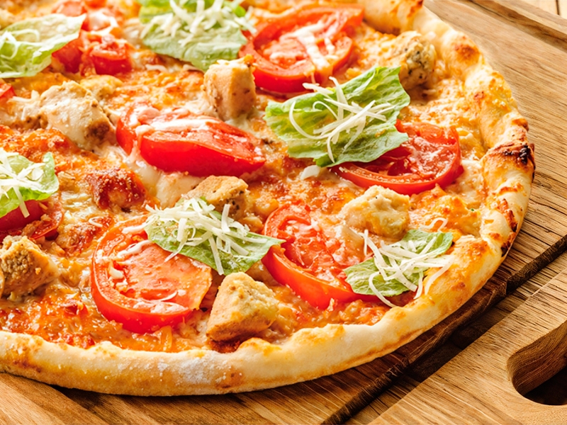 бекон, перец болгарский, помидор, шампиньоны, курица, моцарелла, соус bbq, соус жульен