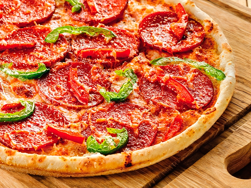бекон, перец болгарский, помидор, шампиньоны, курица, моцарелла, соус bbq, соус жульен