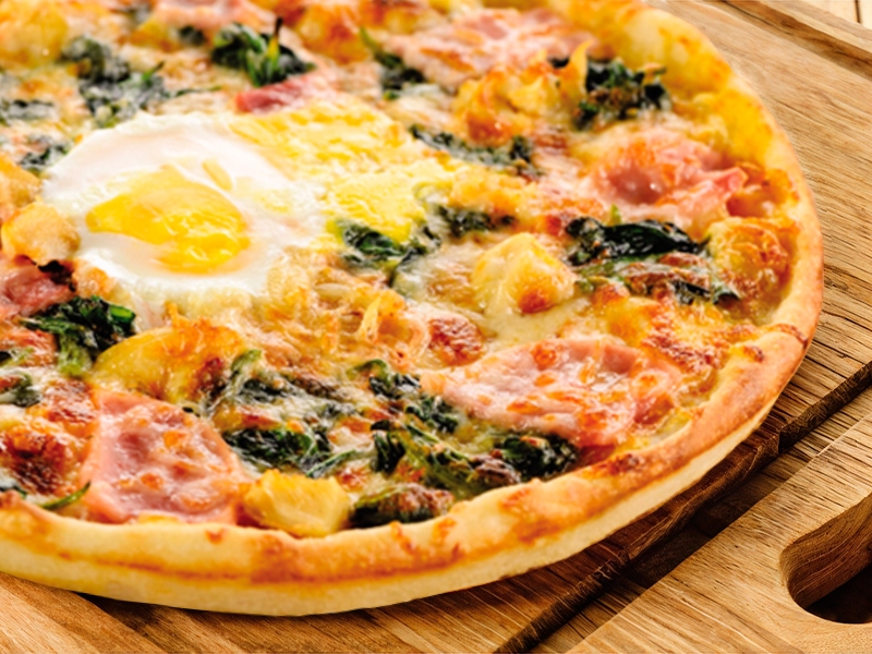 колбаски охотничьи, перец болгарский, ветчина, маслины, помидор, моцарелла, соус фирменный