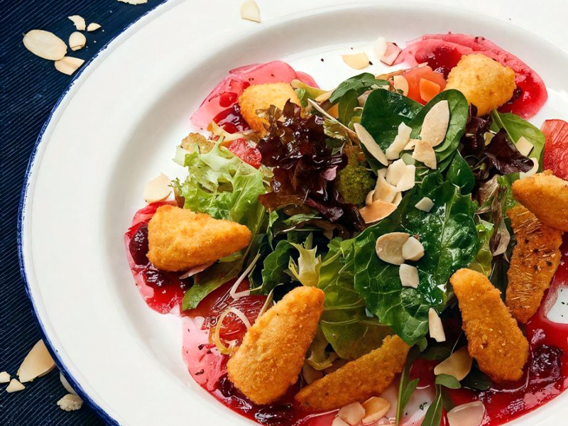 мидии гигант, черри, креветки, салат, кальмар, соус песто сливочный